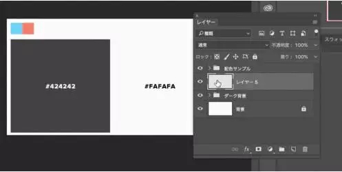 打開Photoshop、創建一個新文件,創建兩個矩形,填充色分別為#424242和#fafafa然后創建一個新圖層,在上面填充基本色(#57CBEC)。