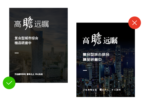 如果設(shè)計稿的文字比較多,首先要注意將圖文分區(qū),這樣可以給大量的文字排版創(chuàng)造空間,也避免了在圖片上加字的問題。其次是創(chuàng)意和版式的完美結(jié)合,充分利用詞組、字母、筆畫的拆分,進行無圖的純板式處理。至于橫豎排版問題,從左到右的橫版更符合人的閱讀習(xí)慣。豎版是從古代竹簡的閱讀效果演變而來,比較適合中國風(fēng)或者傳達意境、情懷的設(shè)計風(fēng)格,配合懷舊的字體使用,如老宋或者清刻等。